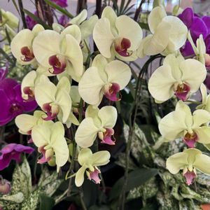 🎵胡蝶蘭のシンフォニー🎶 那覇空港にいます。濃霧で1時間半も旋回し、やっと着きました。これから宮古島に行く予定ですが、これも欠航で、どうなることやら😰 空港のお花に癒されています💐