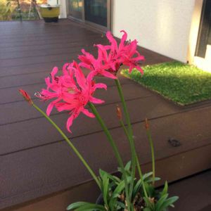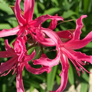 ネリネ(ダイヤモンドリリー)が開花しました👍 母から球根を分けてもらい、今年初めて開花しました! ピンクの花が鮮やかで、写真栄えします😄 太陽に向かって花が輝いて見えます🌸 秋の茶色い景色にピンクの花💐 いいですね👍