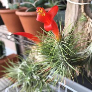 【成長記録】 Tillandsia funckiana フンキアナ 5月花芽が上がってきた 6月もうすぐ咲きそう 1週間後に開花 現在、株元に8つも子株発生。更に花後、頭が割れて!先端にも子株?出現。全部で13もの子株があってどうなるのか心配。 というのも、昨冬、イオナンタドルイドに子株8つも出来たと思ったらその後、お亡くなりになったので死ぬ間際なんじゃないか、と思ってしまう。ボチボチのスピードで成長いただいて結構なので、長生きしてほしい。