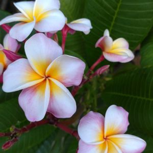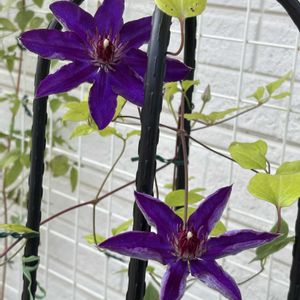 真夏日の京都です🥵 それでもクレマチスが咲いています♥️ 1. プレジデントが色濃く💜また咲いて とても美しいです❣️ 2. 数多くはありませんが ダイアナも絶えずに咲いています 3. ユスタも色が濃くなって 花は小さくなりました 4. アンドロメダは どれも小さな穴が空いて ガッカリ😞何のムシが食べているのでしょう?? 5. ずっと咲いてるアフロディーテエレガフミナですが 花先が擦れた様になってきました