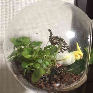 前に作ったコレ💦 奥のシダさんは枯れちゃいました(;ω;) それにひきかえ、ペペロミアは強〜い‼️ オカメちゃんがかじったフォレストを 挿しておいたら根付いたもん(´⊙ω⊙`)