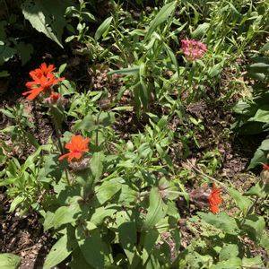 リクニス オレンジツェルグ 2年目 昨年の今頃お迎えしたリクニスさん。冬の間はいなくなっていたので⭐️になったのかと思っていたら周りのカラーリーフをかき分け今年もお花が咲きました💕オレンジー🧡って色です笑 葉っぱは少し毛が生えていてダークな色なのでカラーリーフさん(スナップドラゴン、ヒューケラ共に2年目)達とも相性バッチリ👍 ナデシコ科の宿根草 センノウの仲間?
