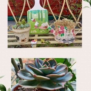 おはよ〜ございます ฅ՞•ﻌ•՞ฅ 🏷ムーミンの日に合わせて くららさんからもらったムーミンのペーパーナプキンをボードにしてみましたꕤ•ᴗ• ダブルで🏷子株の日にも参加します🎶 お行儀よく並んで育ってるのは ヒューミリス×サラ姫❣️ もりもりの子株の方は1年前に胴切りした子ですが名前はわからなくなっちゃいました💦 この時期のタニパトは多肉の生長を見つけるのが楽しいですよね٩( ‘ω’ )۶~♪