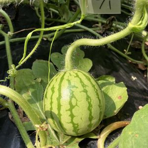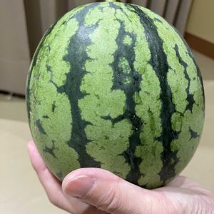 小玉スイカ🍉 アップルスイカ 収穫しました! 手のひらサイズをうたっていましたが、確かに手のひらサイズ🫲 あと、2つありますが、旅行✈️に出かけるので、その前に収穫しとこうと思います。 爆発が怖いのでね〜