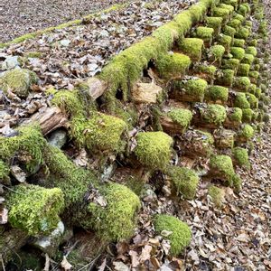 丸太🪵木組みの堰堤 今は水は涸れて落ち葉🍂が積もっているけど 夏は苔も瑞々しくて綺麗でしょうね✧ ③近くにはコウヤノマンネングサ?