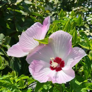 "可憐な火曜日" 散策路沿いの畑。 アメリカフヨウが大きな花びらをいっぱいに広げて可憐に咲いていました。 📷️ 2025.7.7