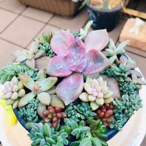 ポロッと取れちゃったオーロラちゃんを植えてたら、この子達だけ紅葉してきたぁ😍 他の親達はグリングリンしてるけど、なぜ??