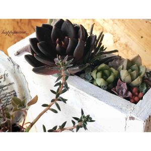 こちらもお気に入りの多肉寄せ♪ シンプルなハンドメイドの木箱に詰めて 春の行楽弁当のようです🍱٩(^‿^)۶