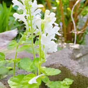 👻👻👻みたいです。 タツナミソウ(立浪草) のつぼみから→ 特定の方向を向いて咲くという特徴があるそうです。 白花と一緒に咲いているところも。 4/18撮り