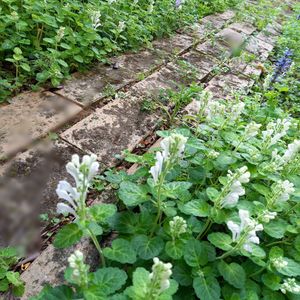 ふと家の裏にまわってみたら タツナミソウがめっちゃ咲いてた!😄 (レンガ汚い💦😅)
