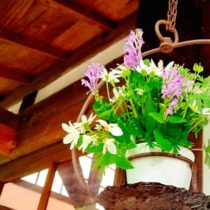 レストランの軒下 さりげなく庭先の花 姫空木に立浪草*°