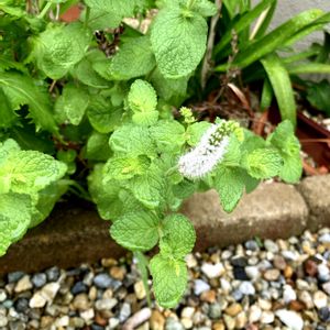 アップルミントに花かつきました。 トレニアコンカラーは、どんどん広がってきたので1株従姉妹にプレゼント お隣さんの桑の葉には、可愛い青ガエルの兄弟?!留まってました。 ご近所さんの百日草は、元気に咲いてました。