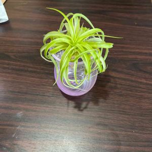 DAISO産のこの子 割と長く居るので来た時よりかなり大きくなりました👏 ふんわりしたので体験工芸で作ったグラスの上に乗せてあげました😁 この子はチランジアなのでしょうか🤔❓
