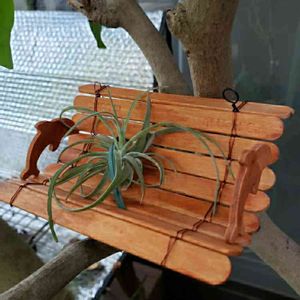ザ・リサイクル アイスの棒とエナメル線の切れっ端でベンチ風にしてみました。手すりはHCで買ったイルカモチーフを強力木工ボンドで接着。 エアプランツはあまり元気が良くないので、ビニタイのシートベルトつき😋