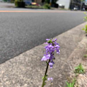 すっと茎が長くて、小さな紫色の 花弁4枚の花でした