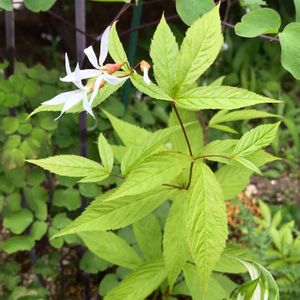 Filipendula ulmaria Maxim (旧名Spiraea ulmaria) ☆西洋ナツユキソウ ☆メドウスイート 今年は去年よりも大きな株になってくれました💚可愛い💕💕 この花はアスピリン💊の起源植物。 『花には風邪などの発熱や胃痛、腹痛、下痢症状など消化器のトラブルに効果があるとしてハーブティに利用されてきた。抗炎症作用があり、かつて胃炎、胃潰瘍のための胃薬として用いられた』 『サリチル酸塩、タンニン、粘液、フラボノイド、精油、ビタミンC、糖類の成分が含まれています。ハーブティとして活用されており、アーモンドの甘い香りが特徴です。 また、化粧品成分としても「セイヨウナツユキソウ葉エキス」の名称で活用されています。タンニンを豊富に含み、お肌を外的要因から守り、肌ストレスを軽減してくれる作用が期待されます。』 だそうです🤔 長文で読む気が失せますね😅 こんなに可愛い子が、じつはすっごく優秀🥰ってことをアピールしたくて😅💦 『湿った草原に群生する見事さから草原の女王クイーン・オブ・ザ・メドゥとも、甘い香りがすることから メドゥスイートとも言われる』 花はロクベンシモツケにそっくり‼️ っていうかソノモノ❣️❕ ほんと可愛い💚💚💚