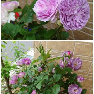 わが家の秋薔薇🌹🌿 グーンと伸びたオデッセイア 小さな花のブルームーンストーン よく咲いてくれるディスタント・ドラムス ご世話なしでも咲いてくれて嬉しい(*˘︶˘*).。*♡