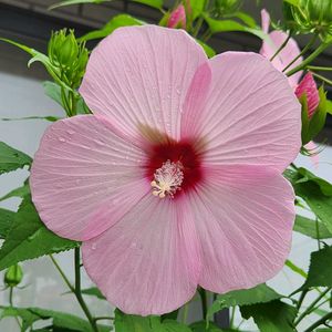タイタンビカス ①②今年最初のタイタンさん ピンクが2輪咲きました ③明日は3輪咲きそうです ④白の蕾が一つ 薄ピンク色だけど明日真っ白の花が咲きます