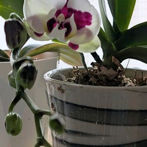 おはようございます。 ミディ胡蝶蘭❣️ 今年も咲いて来ました。😍 可愛いくてパシャリ〜