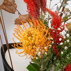 珍しい花のスワッグ。 プロテア、バンクシア、レウコスペルマム。 スワッグ柄のトートバッグも制作しおります。下記のURLよりご覧になれます。ネット販売もしております。 https://plant.fashionstore.jp/items/13765820