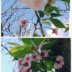 万博公園 桜 2回さく 十月桜 同じ木なのに 白とピンクが🌸🌸