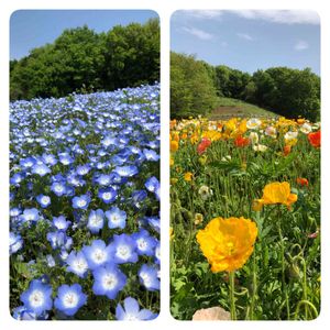 武蔵丘陵森林公園に行ってきました 群生してるネモフィラ、ポピーが青空とよく調和🌤🦋 森林浴でリフレッシュ🎶🌲ウグイスも鳴いてました