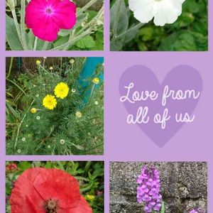 上の2つはスイセンノウの花🌼 真ん中は分からない黄色い花🎵 一番下の左はアイスランドポピーの赤い花🌼 右はリナリアの花🥀