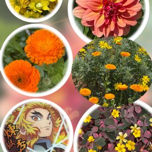 ㊗️煉獄杏寿郎⚔️誕生日🎂 ビタミンカラーで参加します🔥 ↖️4年目のカランコエ💛🧡 3箇所で今年も咲き✩.*˚ ↗️ギャラリーダリア・マディッセ🧡 2年目の今年も6個の蕾をつけて 咲きだしました♪。.:*・゜♪。.:*・゜ 秋に小さい苗を貰って70cmになった キンセンカ(カレンデュラ)🧡 ↘️寄せ植えのオキザリス・雅💛 みんな強く 元気なお花です💪✨