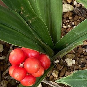 🪴草花たち オモト(万年青) 「今日のお花」 〜万年青 正月花の生花や 愛好家さんの鉢植えでお目にかかったことはありましたが 地植えのオモトは初でした 赤い実が心持ちついていました 赤い丸い実のつぶつぶで 🏷つぶつぶの日 初参加します♡ ☀️ *・゜゚・*:.。..。.:*・🌳✨'・* :.。..。.:*・゜゚・*