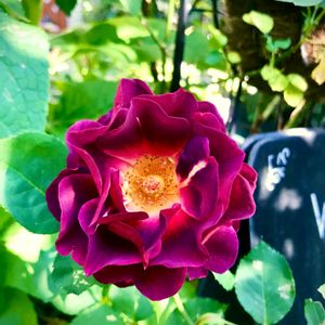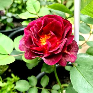バラ ロードライト・ガーネット 忽滑谷史記さんのバラを育ててみたくて、迷いに迷ってメーヴェと一緒に選んだバラ🌹 大きい花ではないけれど、半八重の波打つ花弁が魅力的です✨