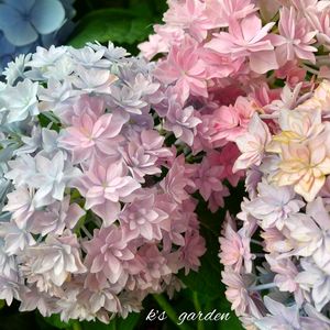 ハイドランジア マジカルレボリューション #38🌿 コロコロ変わる色変が楽しい品種♬︎♡ 今日のような曇り空☁*°はアジサイ達がキラキラ✨美しく見えます😊