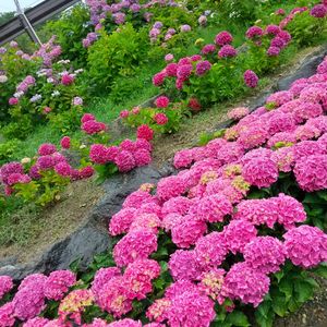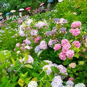 どこまでも続く紫陽花の花と傘の花☂︎*̣̩⋆̩*🌿✨💚💙❤💜💗☂️☔️ 絵になる景色(☆-☆…)☂