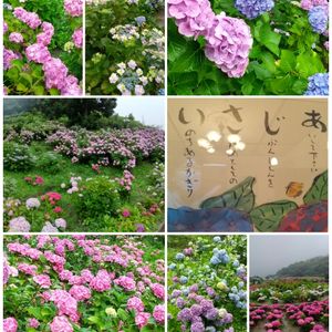 雨です☂️ あじさいの里に来ています🌿 5万株ですよ〜🤩🤩🤩 びしょ濡れもなんのその😆 美しさに酔いしれてます😍😍😍