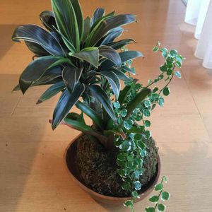 コーディライン 苔玉 お友達が買ってきてくれました🤗 少し見栄え良くなかったので枯れた葉っぱ摘んで、葉っぱふきふきしたら…スッキリいい感じに🙌🌱 大事に育てます☺️