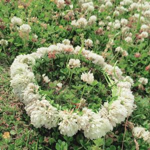シロツメクサの花冠。 幼い頃に母親に作ってもらったようなもらっていないような……。