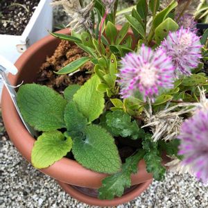 どんどん増えていくラミウム 花が咲いたのでアゲラタムを一緒に植えてみました✨