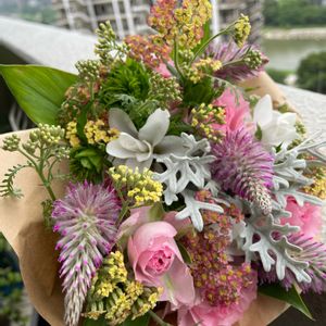 こんにちは! 小さな花束を作ってみました💐 ベランダで撮影してます。