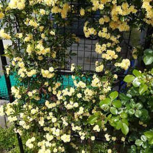 本日の花のモッコウバラ❣️ 昨年春の写真です。 フェンスを明るくしてくれます。