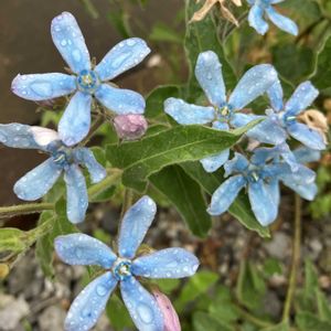今日のお花、ブルースター🩵爽やかなブルーの花色と小さな可愛らしい姿が好きです😌 行きつけのカフェの入り口付近に咲いていました😉 雨で潤っていました☔️✨