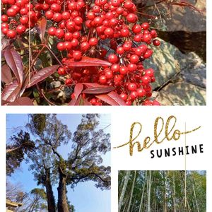 今年初の里山散歩で小さな神社の二股の大木に会ってきました 南天と竹やぶ