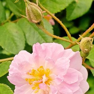 珍しいピンクのモッコウバラです 近所の方から頂き挿し木して7~8年 地植えしてないので広がりませんが 少し遅咲きのお花を付けてくれます🌹