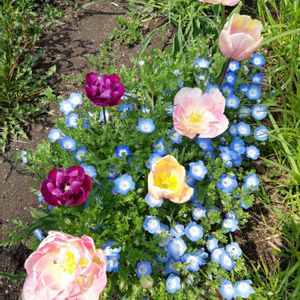 2021/4/18撮影 今日の八重咲きチューリップ🌷アンジェリケは開いていて、うえたビオラ、パンジーもモリモリでした。