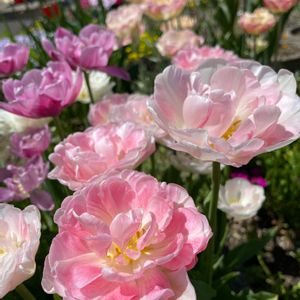 🌷アンジェリケ🌷 ちょっと前に満開になりました🎶😃✨ アンジェリケが満開になると薔薇のように華やかです🌷 6球植えて5球咲きました。 1本から4つ咲きました‼️