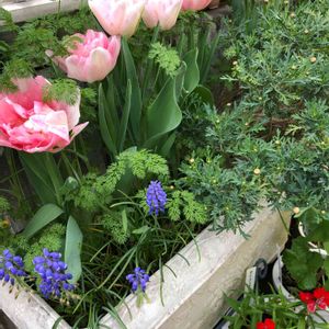 今日のお花、 昨年は、 アンジェリケだったかな。 ムスカリは、そのままで、 もう葉っぱ🌿が、 伸びてます。 今年は、斑入りの葉っぱのを、 植えてます。 まだ、変化なしですが😊