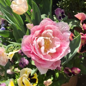 チューリップ アンジェリケ 春の嵐、すごかったですね! チューリップもしずくでいっぱいです💧 やっぱり風に強いチューリップさんです! 何もなかったかのように、華やかです🌸