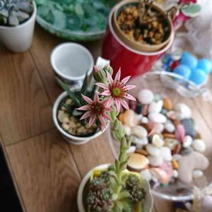 昨日咲いたセンペルビウムに朝起きたら仲間が増えてました… 💕🎶🌿💠👭💠🌿🎶💕
