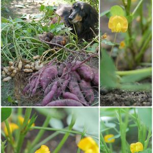連投ごめんなさい🙏 今日のお花 ラッカセイ ってことで 急きょもう1枚 ワンワン祭り🔖 ੯ꔷ̀͡ᓑ\ペコリ 10月23日 収穫した 山芋 落花生🥜 さつまいも🍠と 6月に咲いたお花のコラボ 💛🍀🥜 いつも見て下さって ありがとうございます( ´͈ ᵕ `͈ )♡