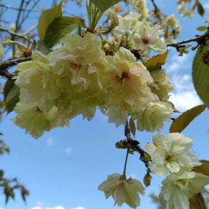 珍しい緑の桜🌸 初めて見ました 御衣黄(ギョイコウ)桜 って言うんですね サトザクラの品種の1つで、開花したばかりの花は淡い緑色、徐々に黄色に変化していき、やがて花びらの中心部が赤く染まっていくのが特徴だそうです