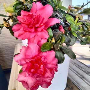 今年お迎えしたアザレア パッと一気には咲かないけど、長く咲いてるの💞 山茶花にも似てますよね 4号鉢