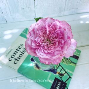 雨の土曜になりました。 絵本のバラが咲いてくれました☺️